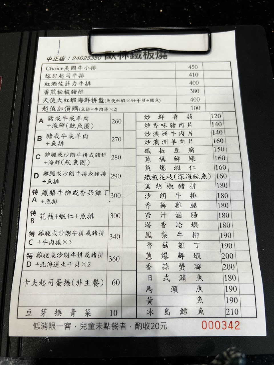 另外,單點的種類極少。一般鐵板燒店常見的蔥蛋、荷包蛋、九層塔蛋、鐵板豆腐都沒有;有的,是起司蛋捲。