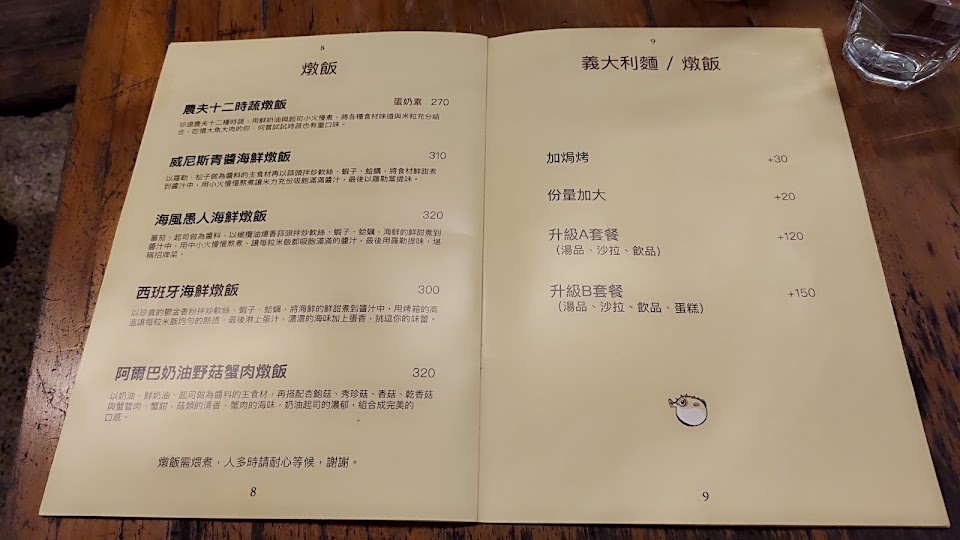 推薦海風漁人海鮮燉飯和奶油礦工培根蛋麵