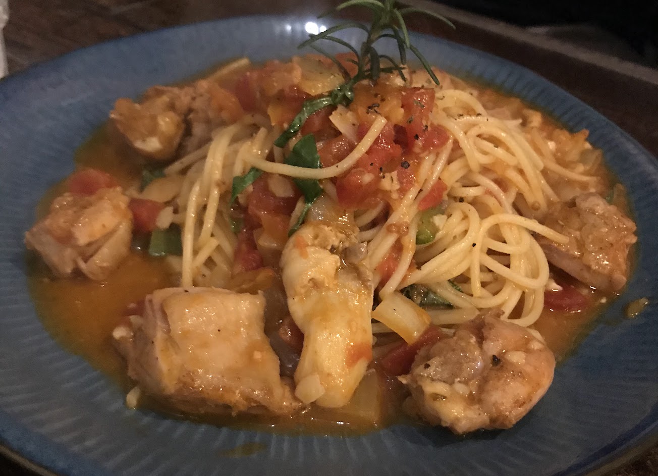 今天用餐西班牙海鮮燉飯很好吃味道很夠,白酒蛤蠣義大利麵味道反而沒那麼夠。