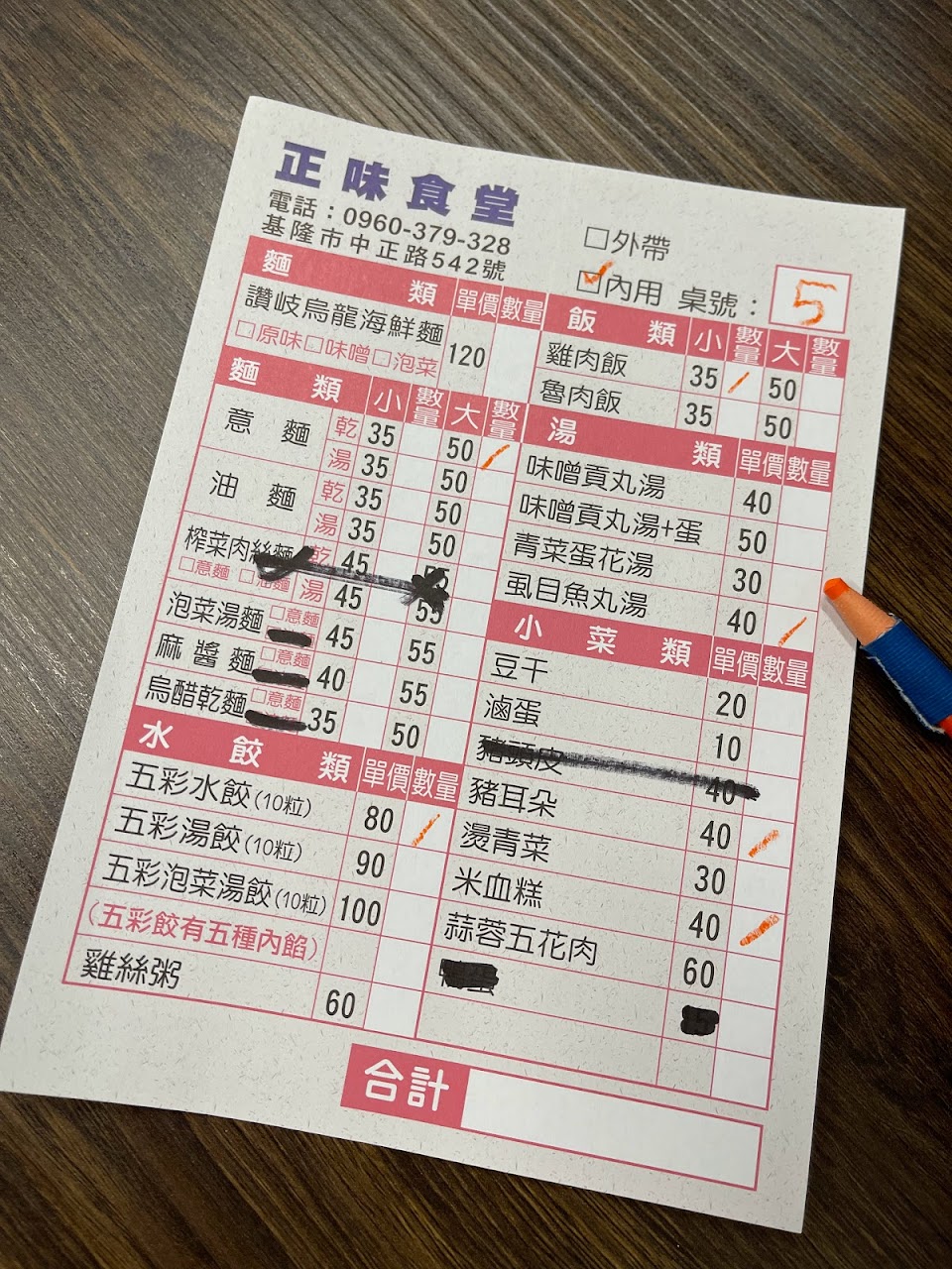 要走出正濱漁港ㄧ點點才會到,東西還不錯吃,價錢合理,我們點了很多東西,請看菜單,味增貢丸湯加蛋好喝,高麗菜甜甜的,雞肉飯不會太油很好吃,水餃皮很扎實內餡實在。紫色是蝦仁、白色是高麗菜、黃色是玉米、橘色是泡菜、綠色是韭菜。
