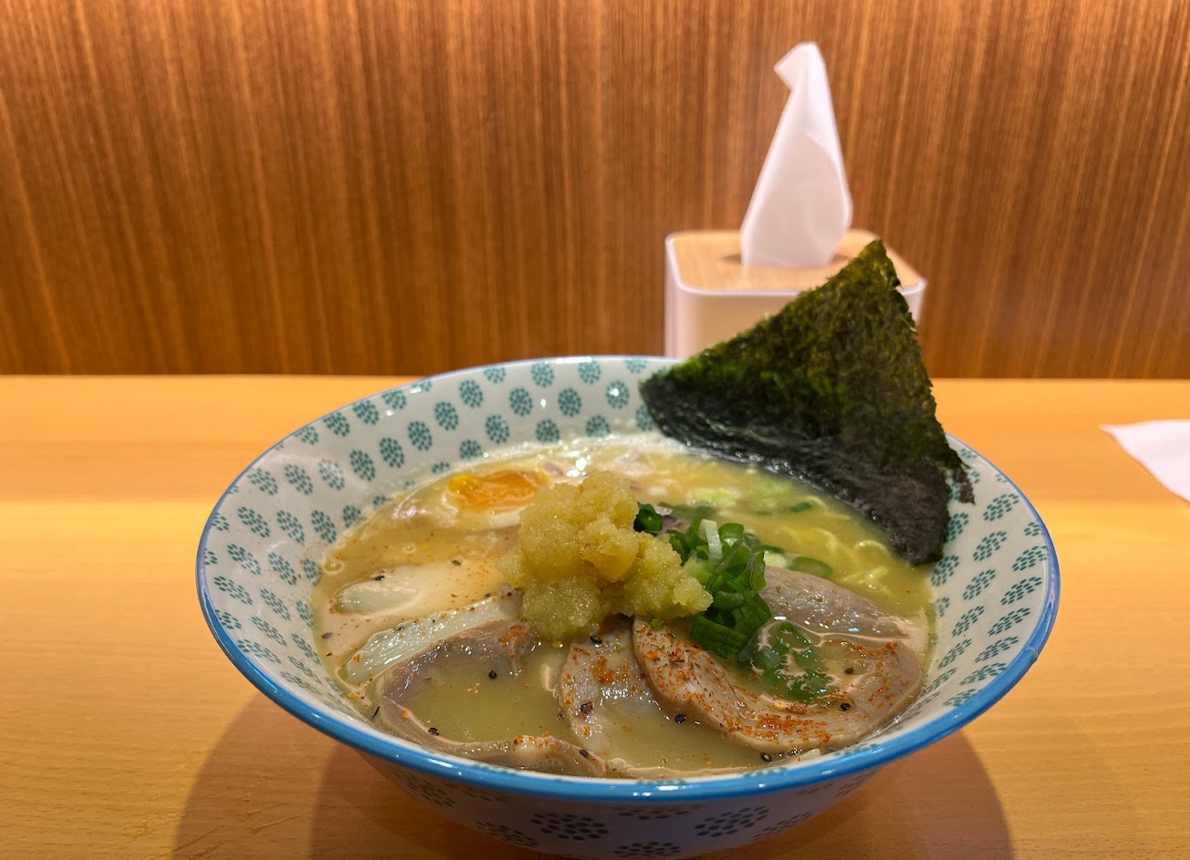 首次來嚐濃厚雞白湯拉麵($140)。雞肉片不柴還算嫩,酒釀溏心蛋也很有記憶點;不過雞白湯頭是沒有到濃厚,整體份量也不多。之後加點的唐揚雞($60)倒是蠻驚豔的,相當有水準:皮薄且炸的軟嫩多汁,搭配高麗菜絲一口咬下,大口滿足!另外店員服務也相當親切。