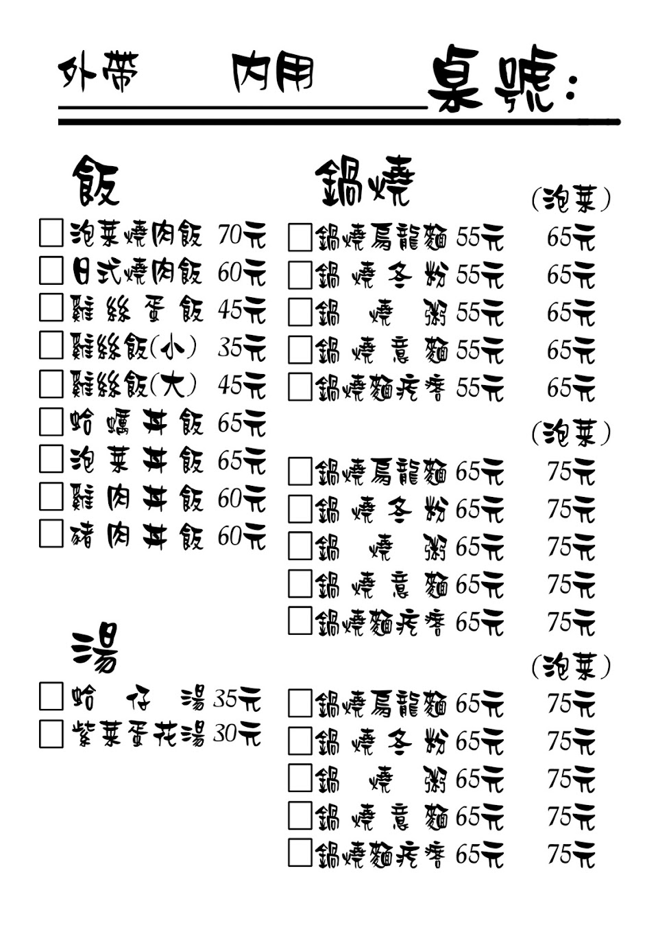 建議菜單可以加一個醬油拌飯加蛋,就是雞絲蛋飯不要雞絲,然後賣便宜一點:)