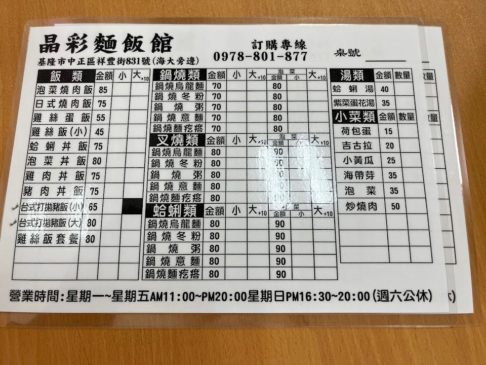 2024最新在地推薦餐廳的菜單_晶彩飯麵館海大店的菜單、圖片