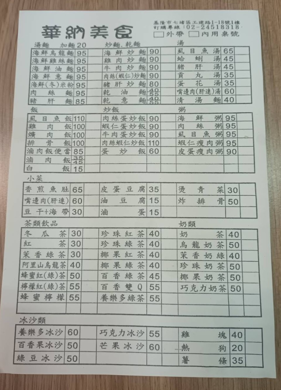2024最新在地推薦餐廳的菜單_華納美食|海鮮麵/粥專賣店的菜單、圖片