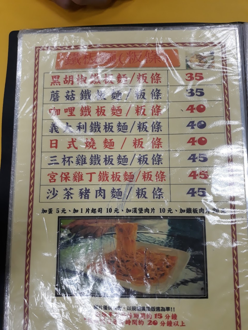 餐點就長期的經驗來說反而還進步了(這次吃的是黑胡椒鐵板麵,個人覺得變好吃,可能廚房有換人)飲料部份維持水準,因為餐點部份給四星,不然應該和多數人給3星評價,因為老闆娘的情緒沒有餐點穩定…
