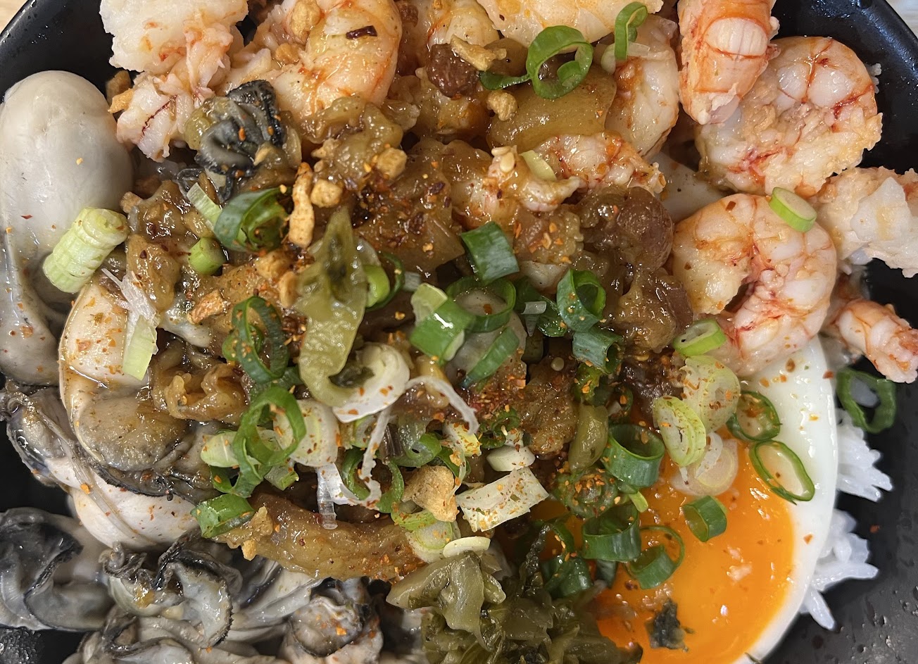 這兩年很熱門的打卡店,女神蝦扯蛋蓋飯!滿滿的胭脂蝦+半熟荷包蛋,基隆哪有不新鮮的海鮮?