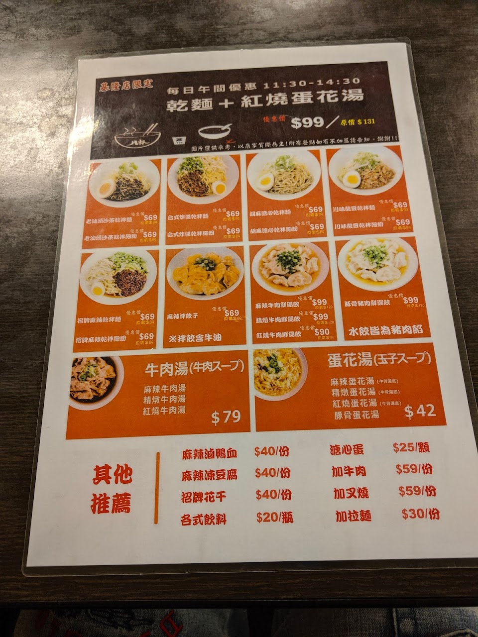 之前吃過麻辣乾麵覺得好吃,這次再訪點了煙燻豆皮及麻辣牛肉拉麵,豆皮算好吃,真的有煙燻味;麻辣牛肉拉麵,牛肉片給的還算滿意,而且肉片也不會柴,湯頭也還行,不過鴨血沒啥味道⋯覺得有些可惜。