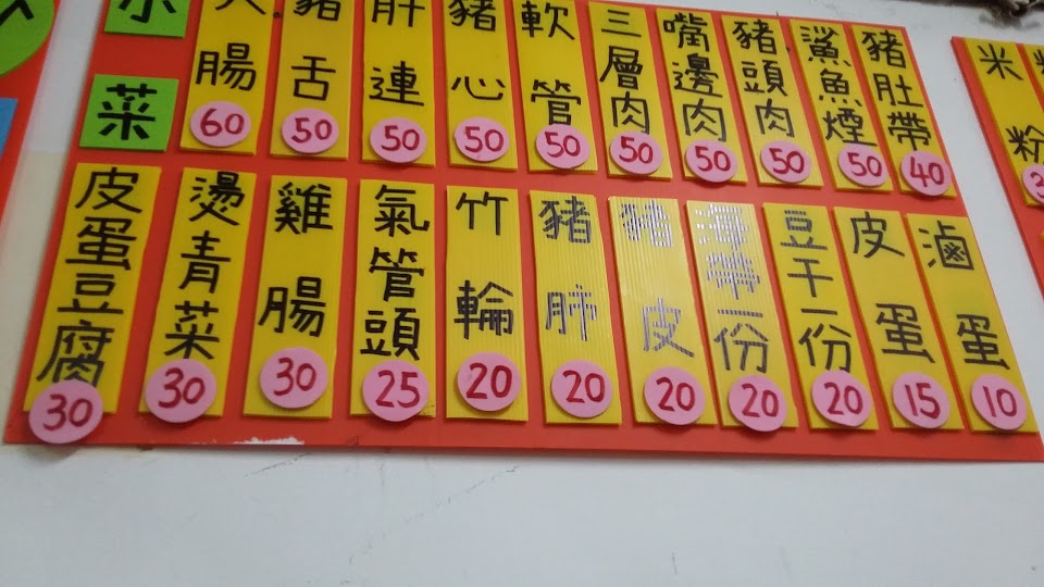 這裡有貢丸麵和豬腸麵, 還有滷肉飯、 爌肉飯, 和肉燥飯。