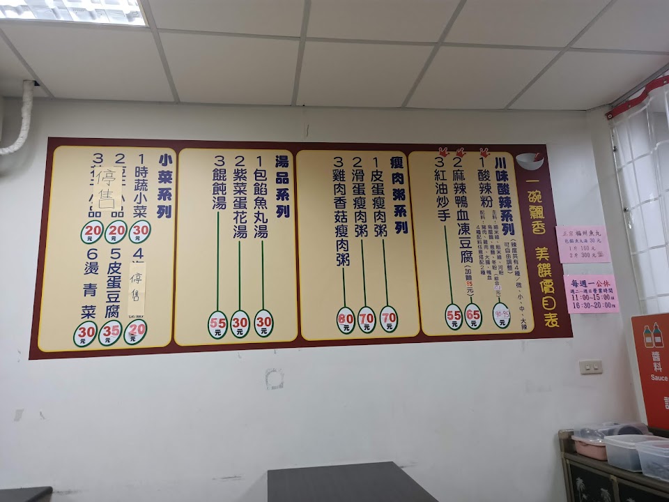 口味比較偏台式 從微辣到大辣間可調整 對我來說真的超好吃 個人大推四川粉條 (最近比較常吃蒸煮麵 也不錯) 雖然店裡裝潢簡單 整體很舊式 但是食物真的推