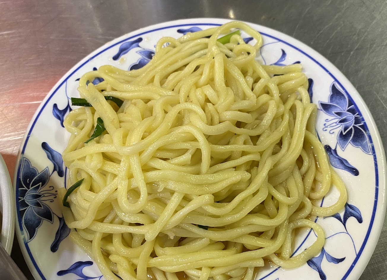 大麵炒使用了微粗的黃麵,看起來好像沒麼調味應該會很清淡對吧?其實那淡色醬汁中充滿了蒜香,今天吃到一半才看到人員拿出一大包蒜泥投入醬料罐內,再加上韭菜,吃下去真的太爽了,就愛這一味!