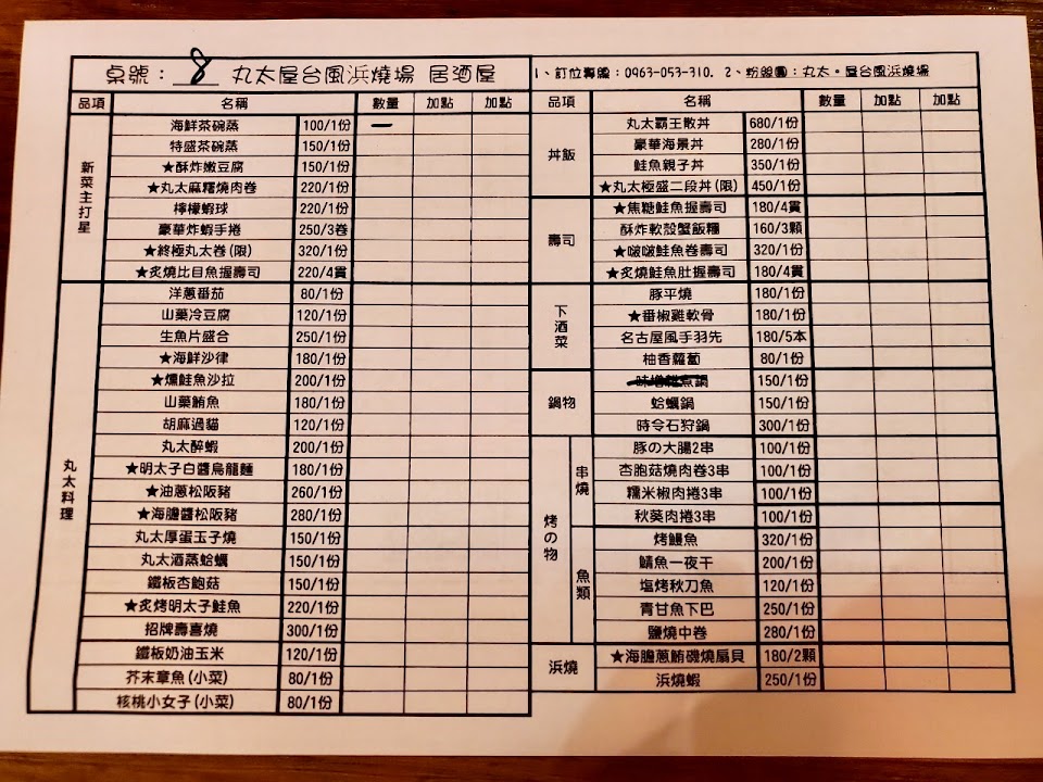 2024最新在地推薦餐廳的菜單_丸太。屋台風浜燒場的菜單、圖片