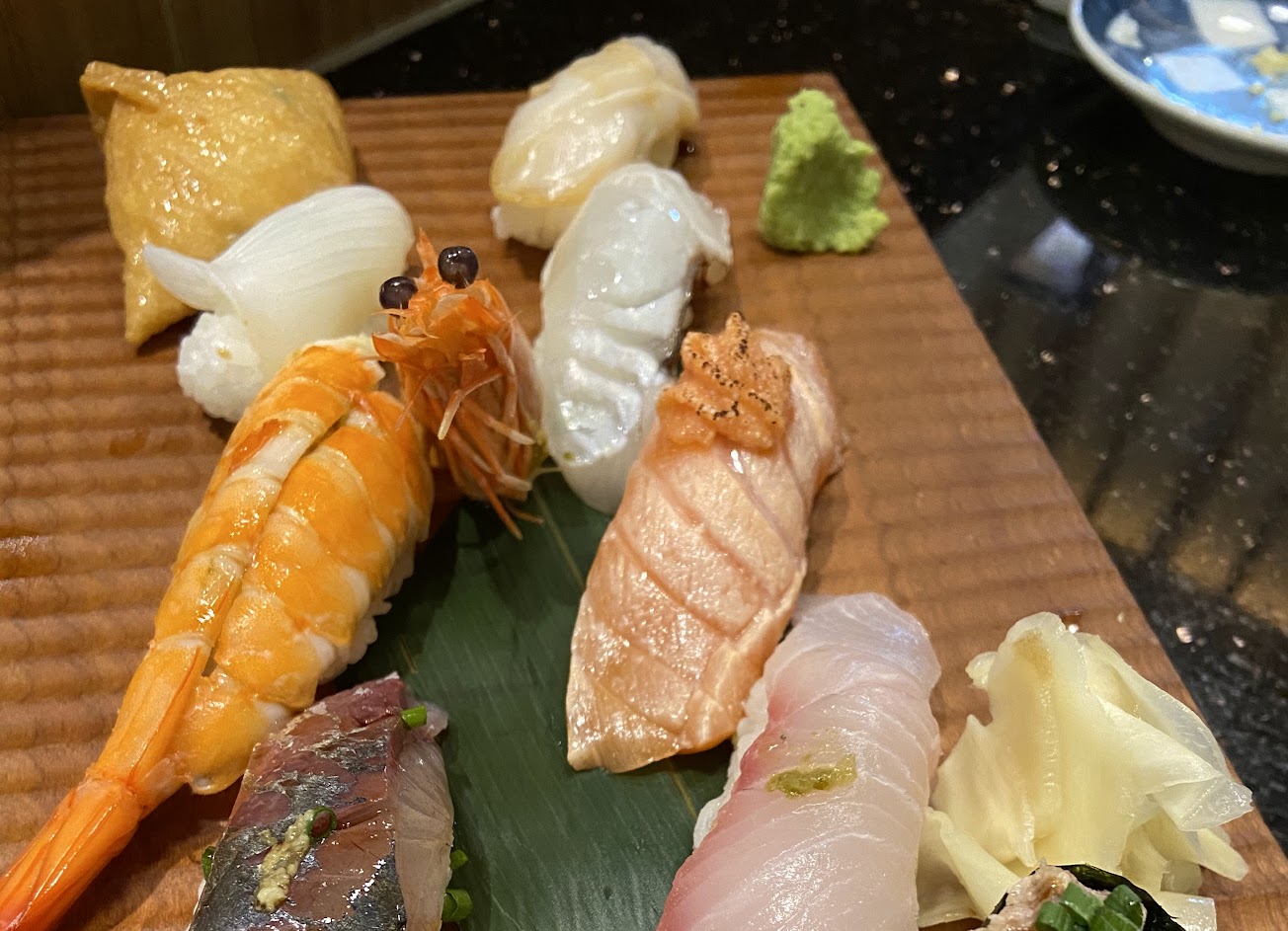 值得一再光臨的餐廳! 魚料新鮮,套餐整體都很美味,不管是炙燒的還是生的壽司都非常的美味。醋飯好吃,而且飯和魚料的比例搭配的非常平衡。芥末是現磨的,辣但是有香氣和甜味。魚料多樣化而且味道和刀功都很棒。茶水和味增湯也不馬虎,茶水是牛蒡茶,味增湯的料給的超慷慨而且味道不因此打折,一樣好吃。