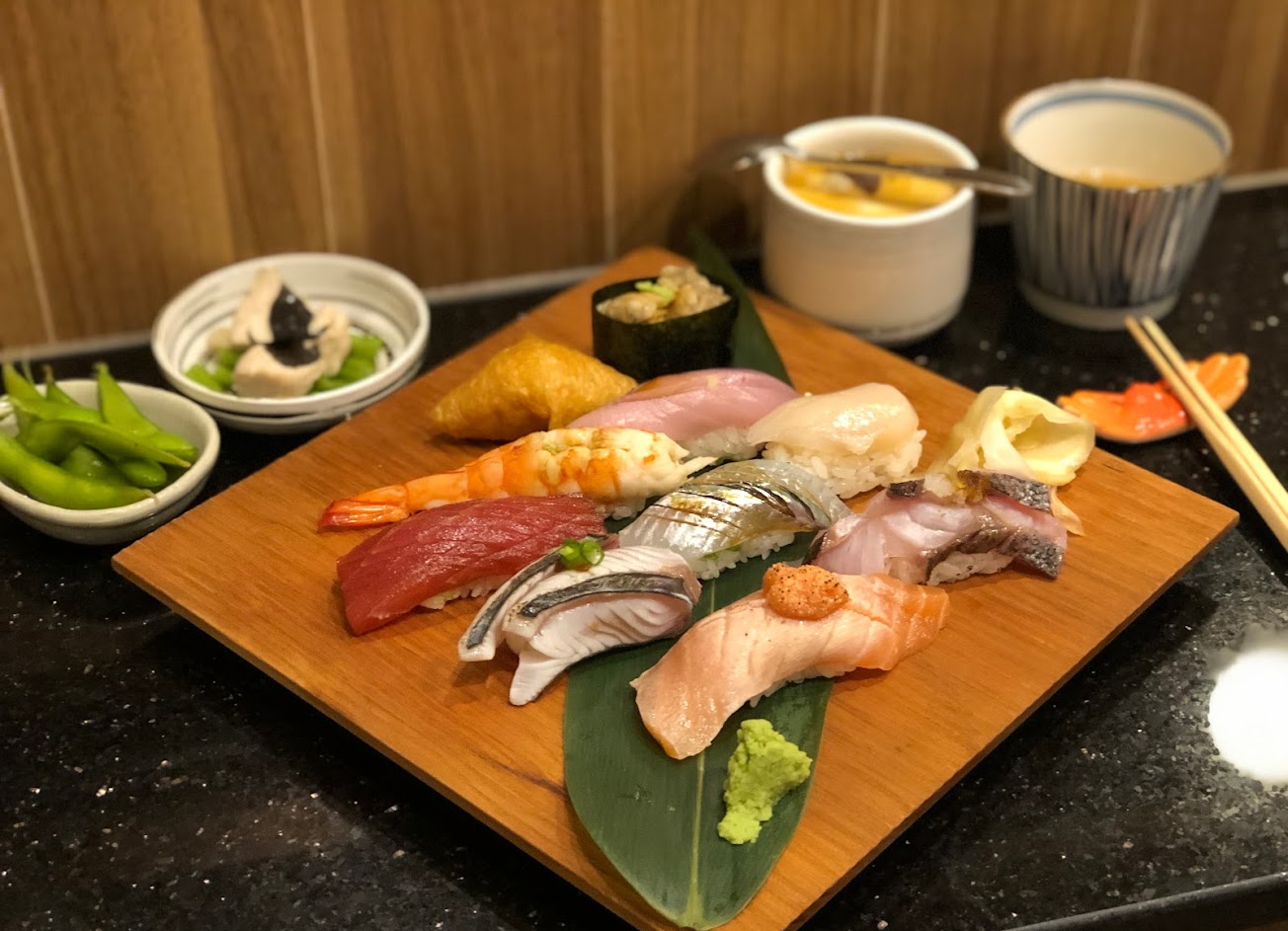最基本的九貫從前菜、味增湯到甜點都有,握壽司?在水準之上,店內空氣味很像在日本,位置雖少但乾淨簡單,還會再訪。 …