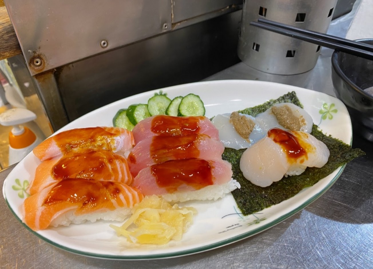 價錢適中、魚料新鮮,但醋飯捏的偏硬且變形,魚料切的厚薄粗細不均,口感打折、感覺就隨便出餐,握壽司的魚片還用破損的餘料,實在令人搖頭。