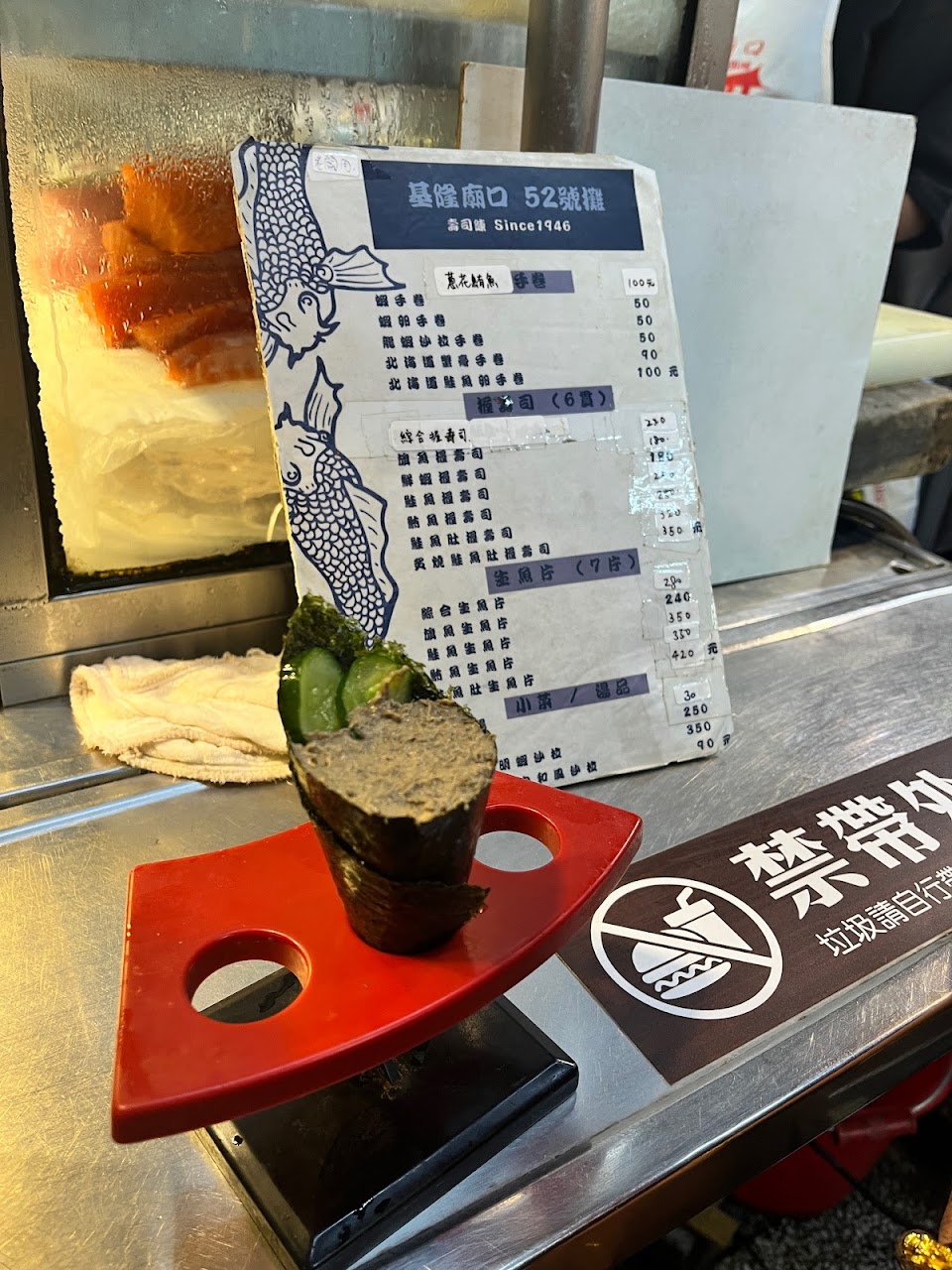 手卷跟鮭魚味增湯超級驚豔,而且超便宜,以後去廟口都要吃5個手卷❤️