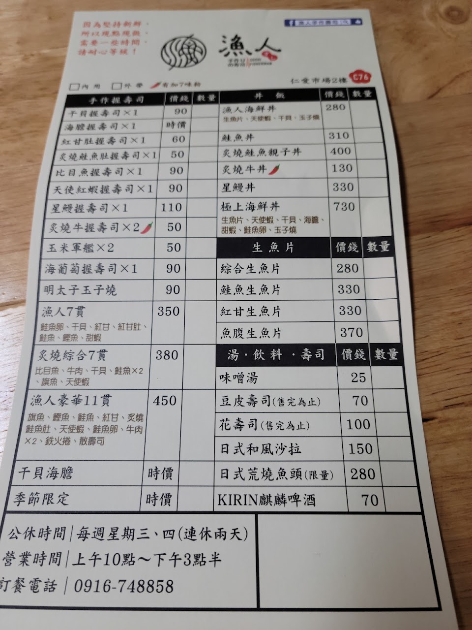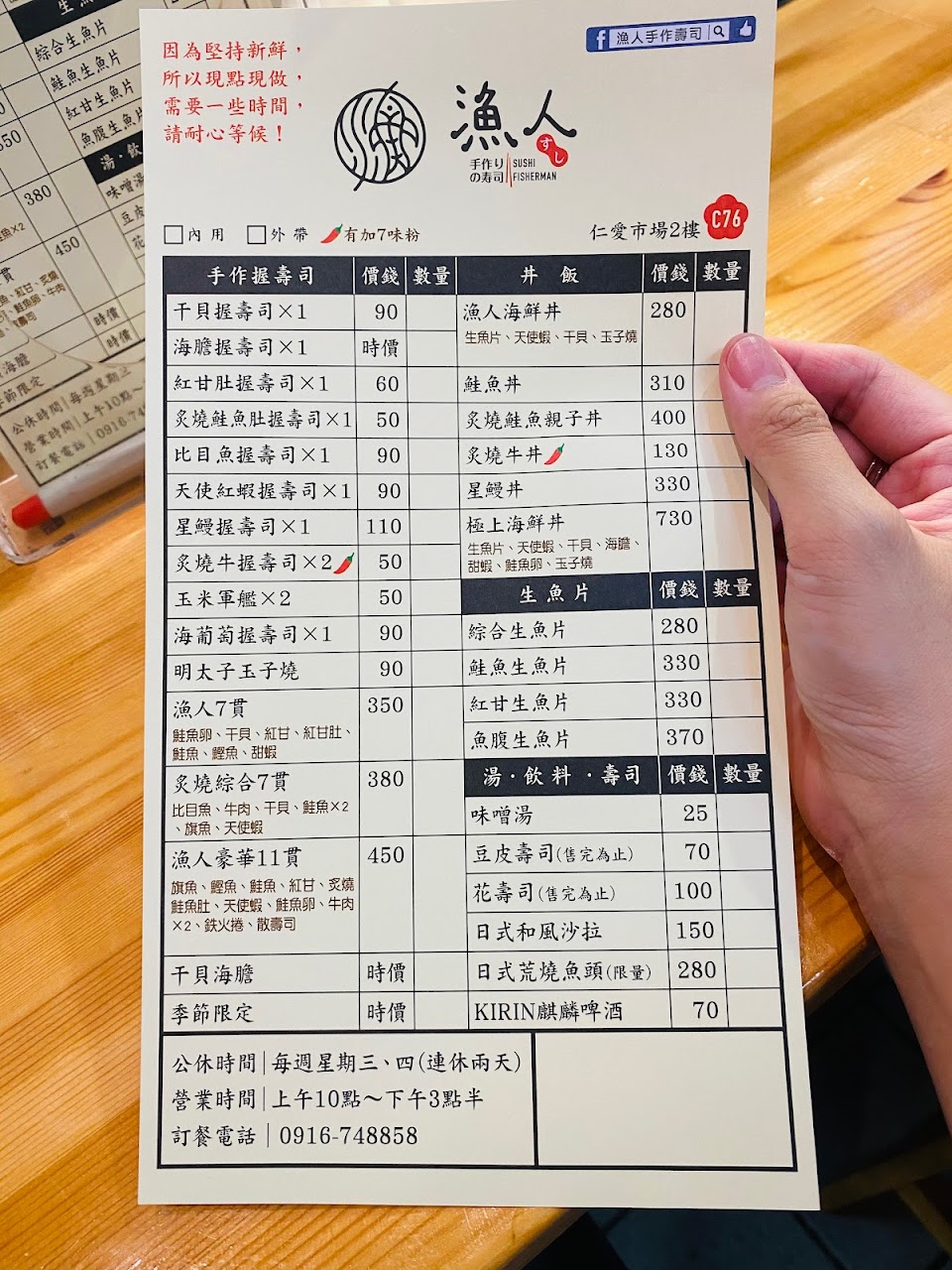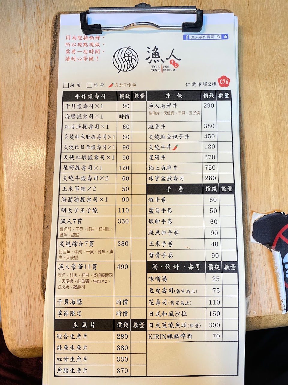 2024最新在地推薦餐廳的菜單_漁人手作壽司的菜單、圖片
