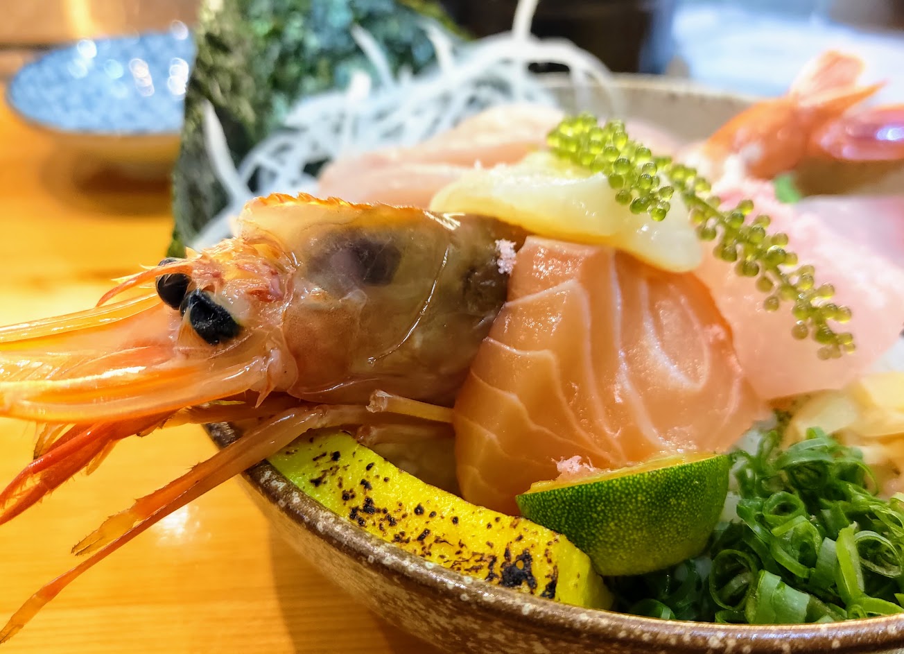 海鮮丼的天使蝦很大、很新鮮有驚艷,但其他都中規中矩,醋飯很台式 …