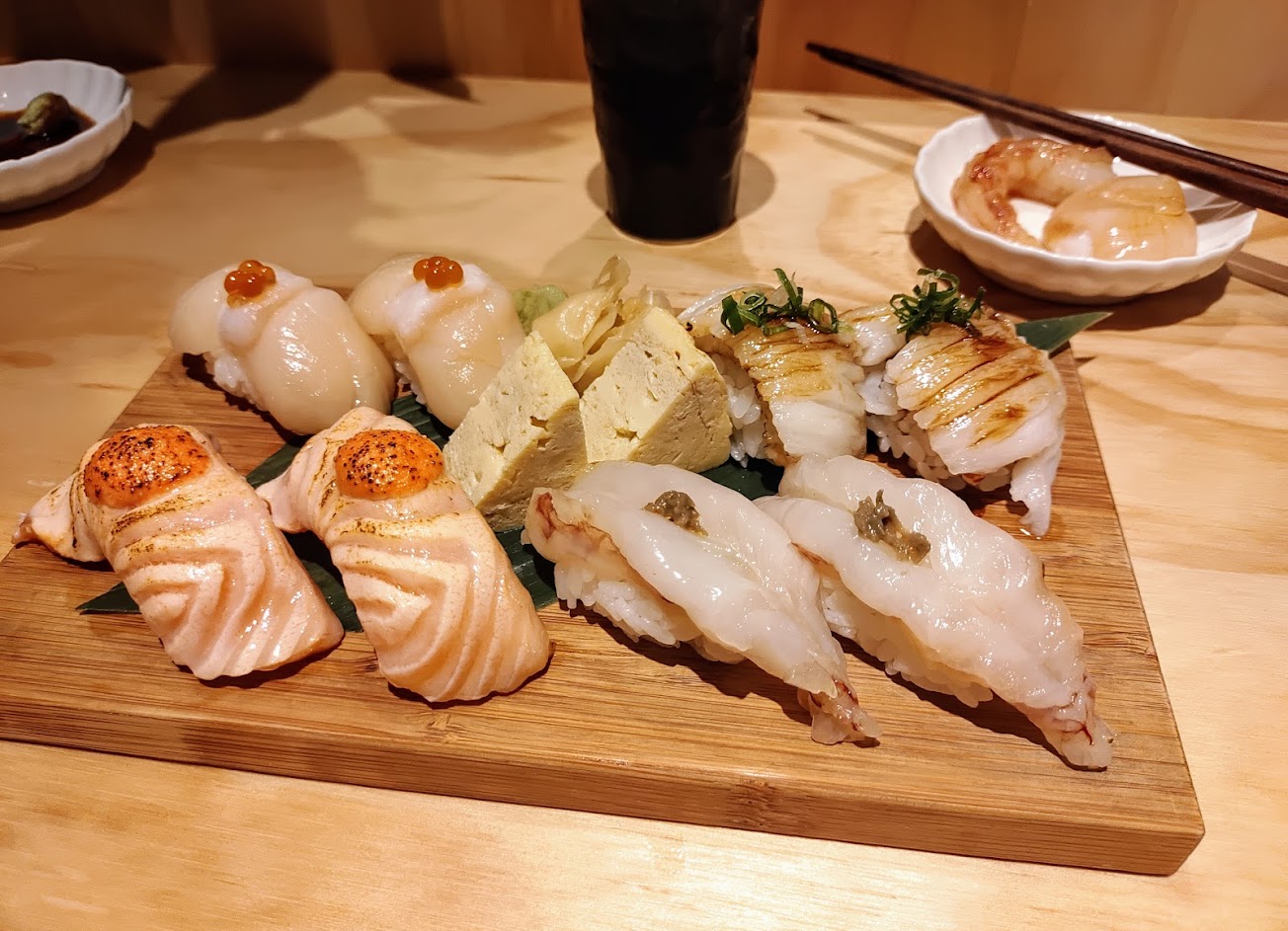 就很好吃!蝦子好好吃,好脆彈,都不用沾醬油就很好吃。魚肉也是,炙燒的那個魚(我不知道名字哈哈)油脂感豐富,搭配少許蔥花十分解膩好吃。