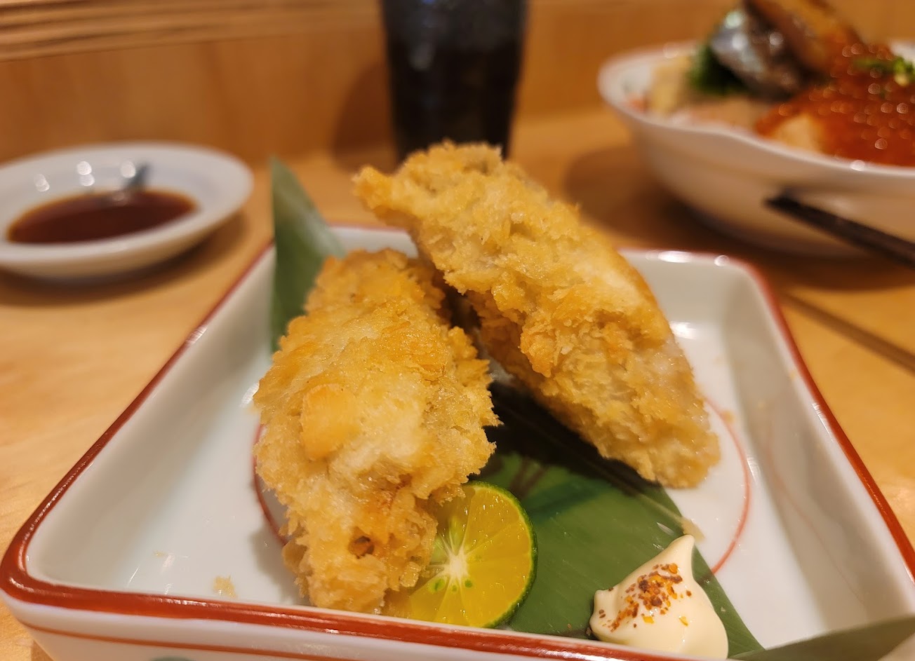 魚鮮生的店面坐落在牛仔街裡頭,距離基隆熱鬧的街上有一小段的距離,也因為這樣有著小店自成一格的底氣。店內座位數量不多,就是圍繞著吧台的幾個位子(除了品嘗美味更可以欣賞師傅料理的每一步驟),店家不提供事先訂位,只能現場候位。套餐式的消費,菜單沒有固定,視食材會做調整,粉專上都會有每日限量的介紹,去之前不妨先參考看看。食材有一定的品質,調理的手法也嚐得出用心,我喜歡這次吃到的牡蠣,味道鮮甜,調理清爽沒有腥味,八貫壽司也都是水準之上,烤雞肉則稍嫌乾了一點。