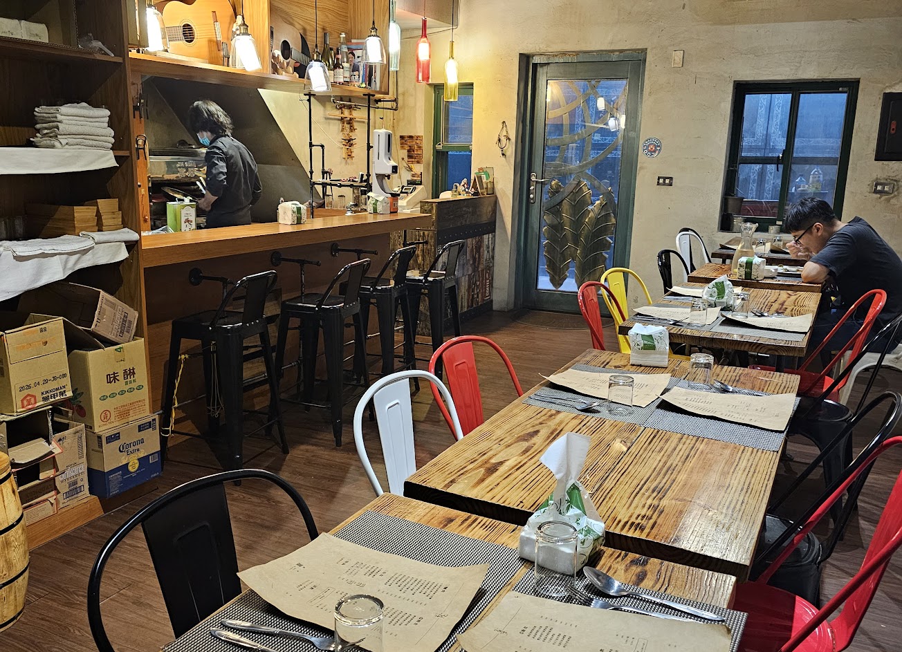 在基隆慶安宮後面的巷弄內美食 店內頂多容納10幾人,主打義大利麵? 店員親切,會介紹餐點,無收取服務費 推薦海鮮義大利麵,海鮮新鮮、香味很足 唯一小缺點是有點偏鹹 店內油煙味確實較重,且沒有提供置物籃供客人放置物品 有廁所一間,男女共用,是坐式馬桶,乾淨度還可以 結帳付現或是Line pay 附近沒有停車場,建議走路或是騎乘機車過來用餐 服務 內用 餐點類型 晚餐 平均每人消費金額 $200-400