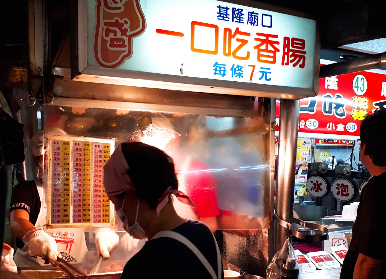 基隆的食物吃起來都有點甜甜的(外地觀光客) 吃完很多甜食之後買一兩個一口香腸解膩剛剛好 老闆娘還會問要不要蒜頭,一口香腸配蒜頭,讚