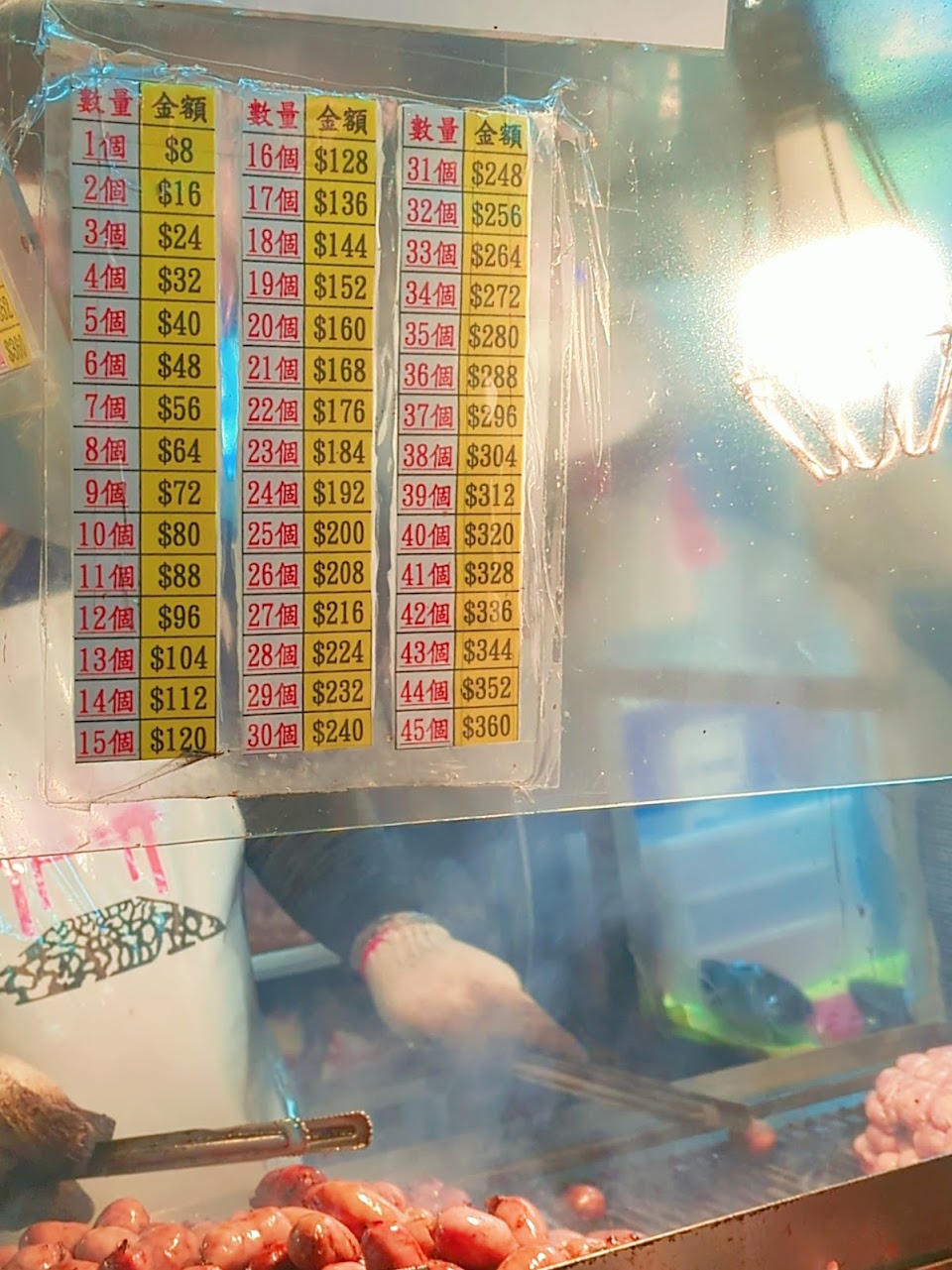 一顆小小香腸要七元,買了四顆,給的全部都焦黑,也不會把焦黑的地方弄掉再給客人,吃了易得癌症吧
