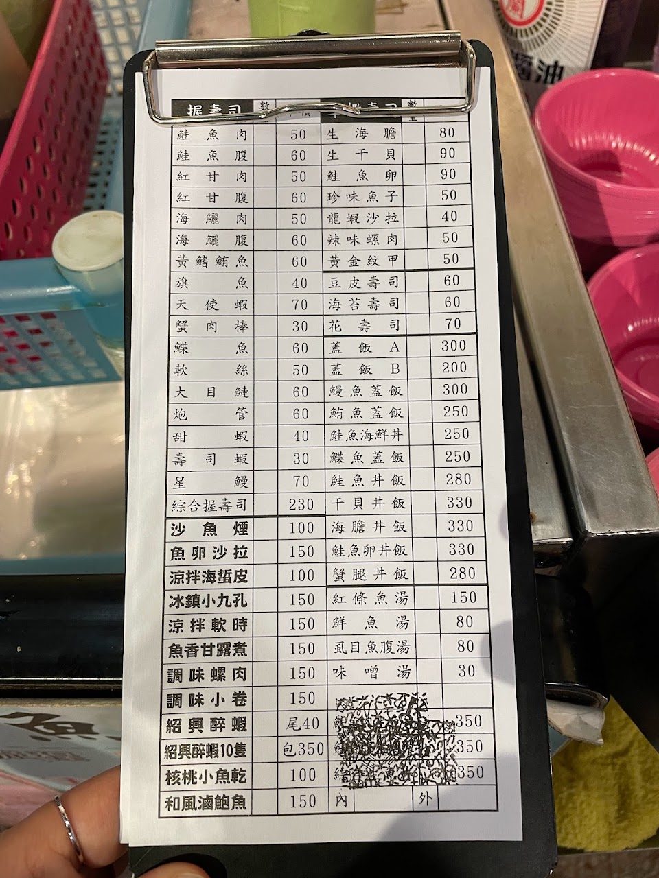 雖然部分生魚片比較特別,但點甜蝦、海膽感覺並不是很新鮮,價格應該是有比較便宜,點生魚片時要知道要吃幾兩這對我來說有點困難