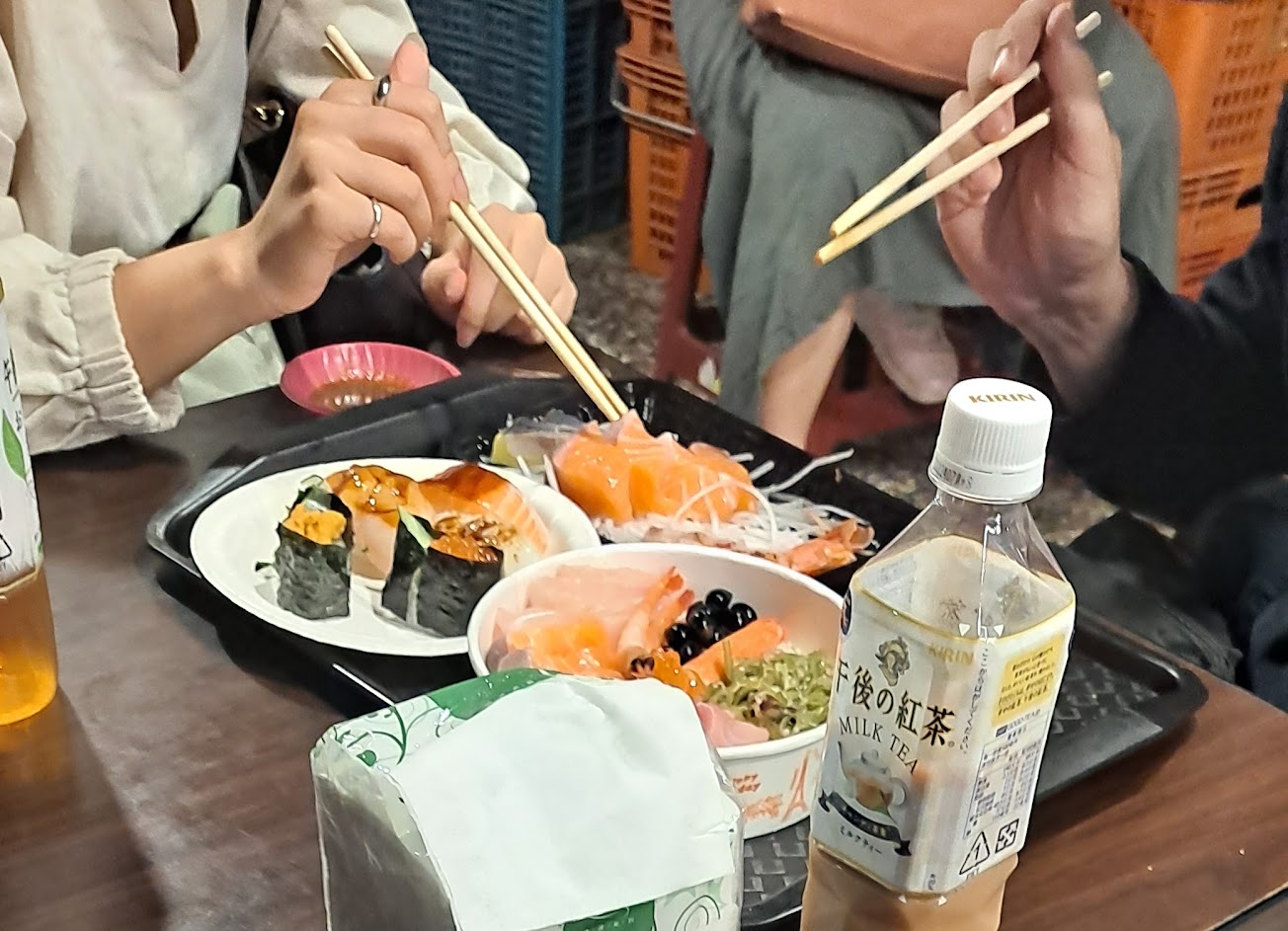 生魚片新鮮便宜,花壽司便宜但是味道一般,動線有點奇怪,要買生魚片的記得先抽號碼牌,至於現煮魚湯和壽司則是直接畫單就好,並且要自己找位置,所以建議大家分頭行動。
