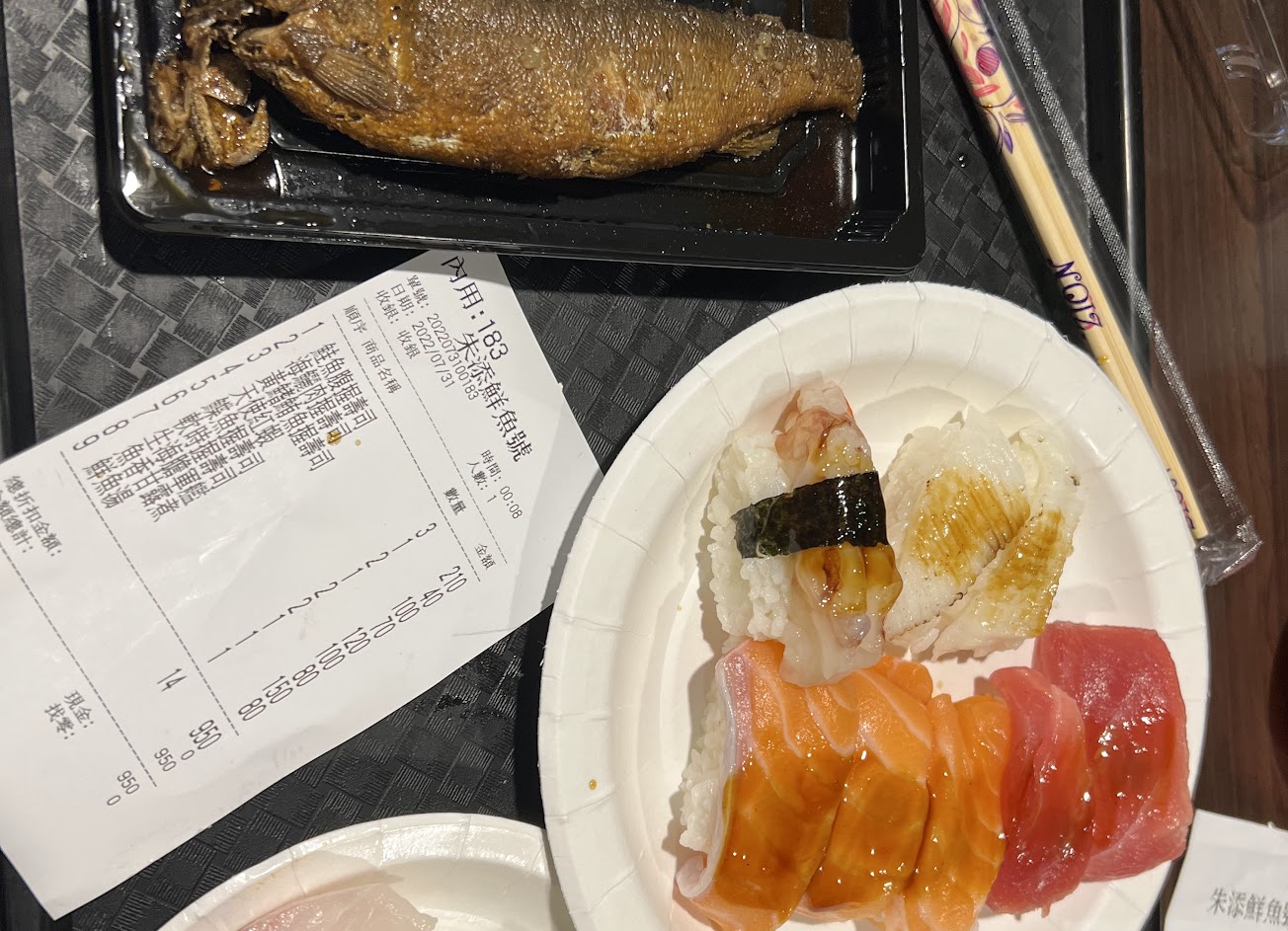 慕名而來嚐鮮,生魚片新鮮好吃,外帶這份量240元,有給收據忘了拍,索取發票店員說本店沒開立發票,看了一下店面四周也沒張貼免用統一發票阿。 米20210825粒