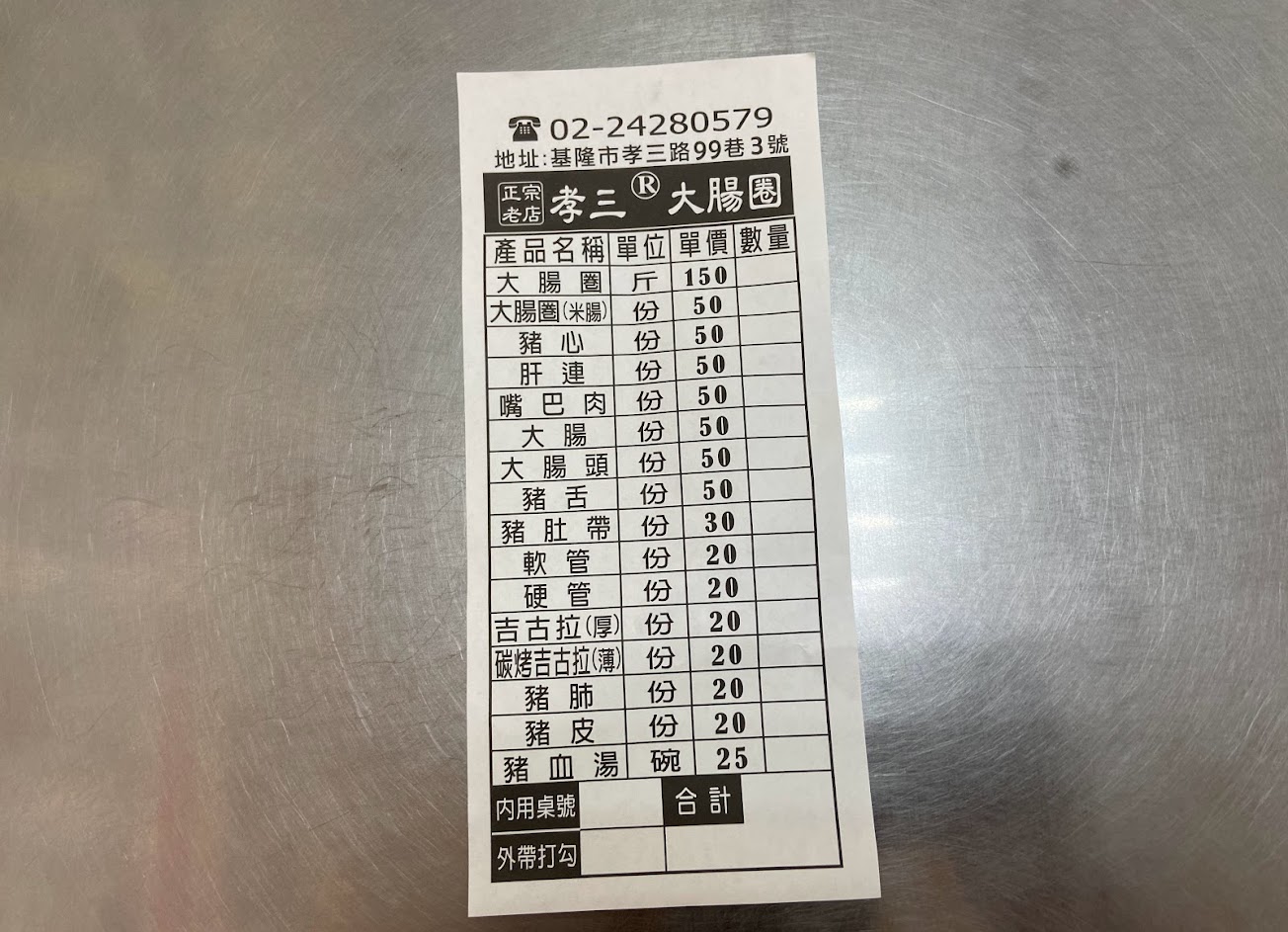 2021.01 漲價,大腸圈$50,嘴邊肉$50。