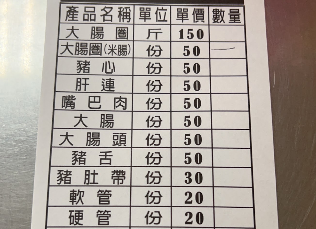 專賣香腸、豬血和內臟的樸實小吃店。