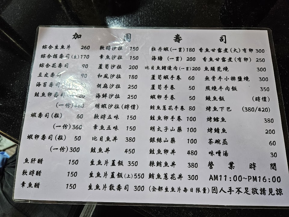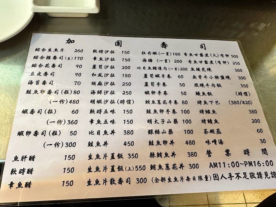 2024最新在地推薦餐廳的菜單_加園壽司的菜單、圖片