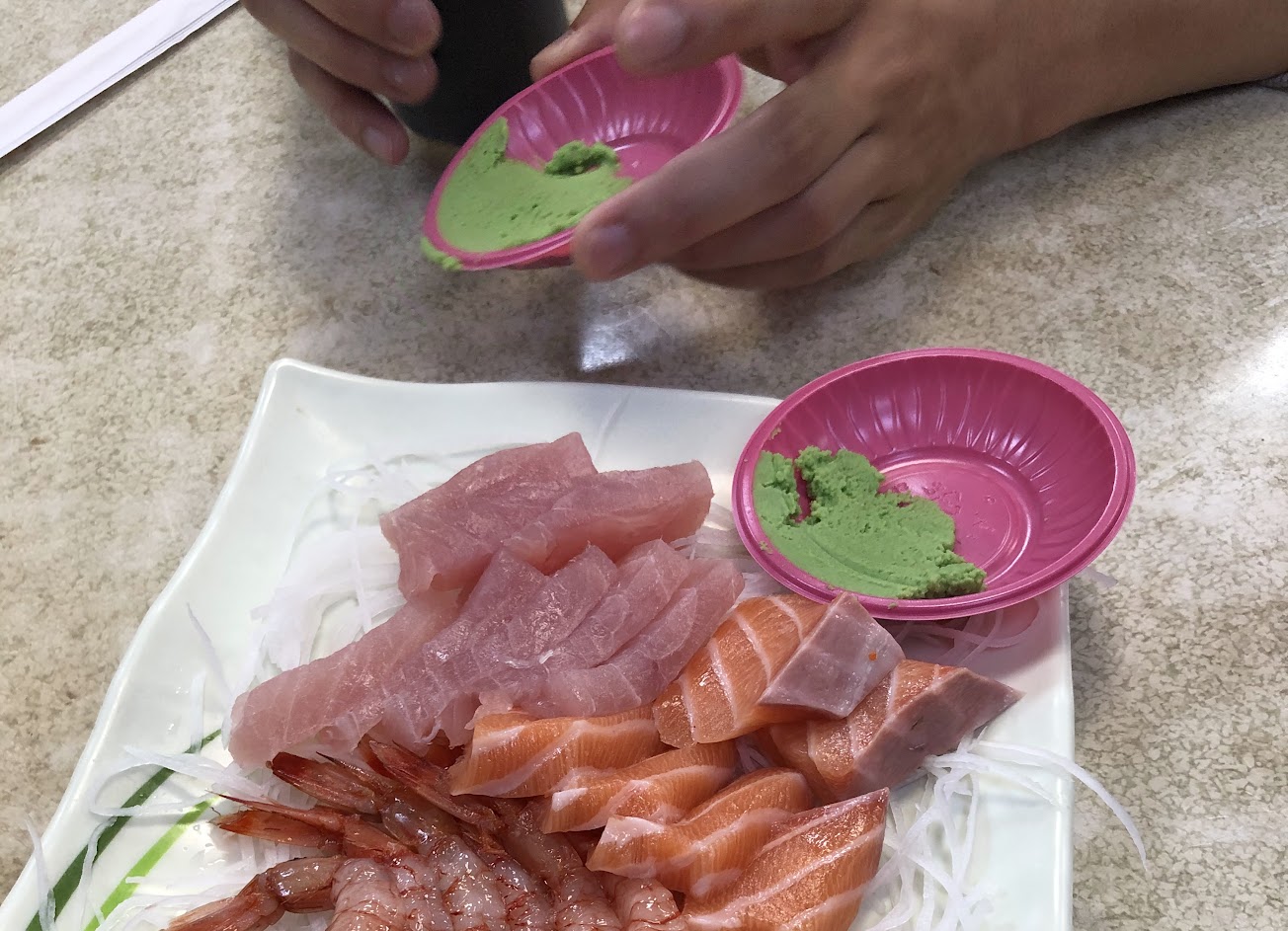 魚真的新鮮好吃,這次剛好遇到在分切剛到的魚,因為疫情店家也會幫忙分裝小盤。