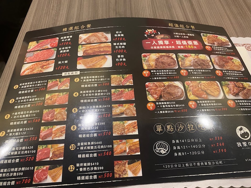 牛排煎的勉強通過 沙拉吧也有待加強 前後只有6個菜 菜色超少 所有的食物口味偏淡沒什麼味道一樣是我家牛排為什麼沙拉吧差那麼多而收費是一樣的有空可以去看看我家牛排板橋店跟中和店