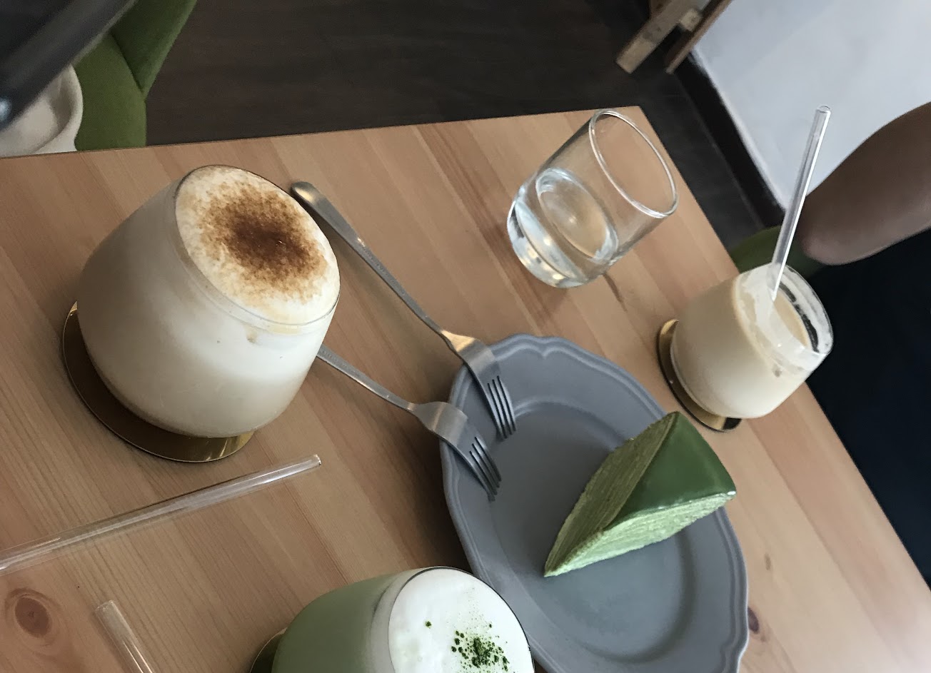 覺得很普通,飲料有需改進,咖啡只有冰滴一種,12:30營業12:45到就都沒了,剩熱茶跟奶茶,蛋糕⋯不知道是特意要做出特色還是?海棉蛋糕很有嚼勁,但抺茶醬好吃,芒果千層也不錯但有些芒果已有發酵味,另外⋯我們到時只有我們這組客人,櫃台裡有三個人,我們點二片蛋糕現場吃,等了十多分鐘送過來也沒有任何擺盤,不知道只是從冰櫃放到盤子上為什麼要那麼久,冷氣也有點不足坐著一直流汗⋯仁愛市場二樓還比較涼快