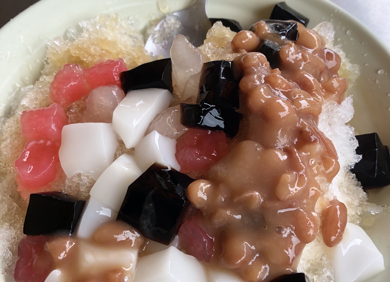 芋圓到底怎麼了…?我住基隆這麼多年吃過這麼多芋圓,第一次吃到硬到不行,完全沒有口感可言…,還有裡面的料真的很一般,難怪招牌寫著回憶的味道…但我小時候肯定沒吃過這麼普通沒特色的冰……