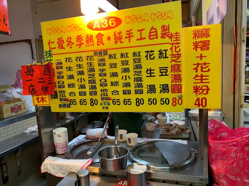 神等級的花生湯,紅豆湯絕對媲美大飯店等級的甜湯。 所有的圓類跟配料都是老闆自己手做的, 配料超多又實在好吃, 大排長龍的理由非常可以理解 純手工芝麻湯圓,聽說是老闆每天自己做的手工湯圓,所以數量非常有限。 在地仁愛市場的傳統老店,能夠吃到是幸運。下午三點之後很容易撲空。