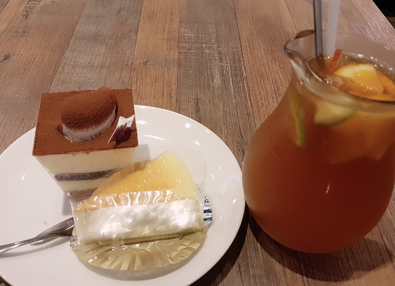 下午茶只能兩塊蛋糕+一杯飲料 兩人同行就需要另外點一杯飲料 這樣比較不划算 與其這樣不如點兩份下午茶套餐 吃不完就打包好了