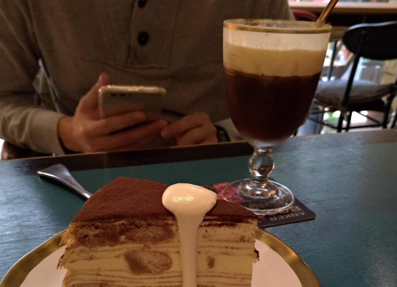 樓下熱鬧、樓上清靜輕鬆自在、咖啡加厚不加價、甜點常變換、千層好吃到不行。