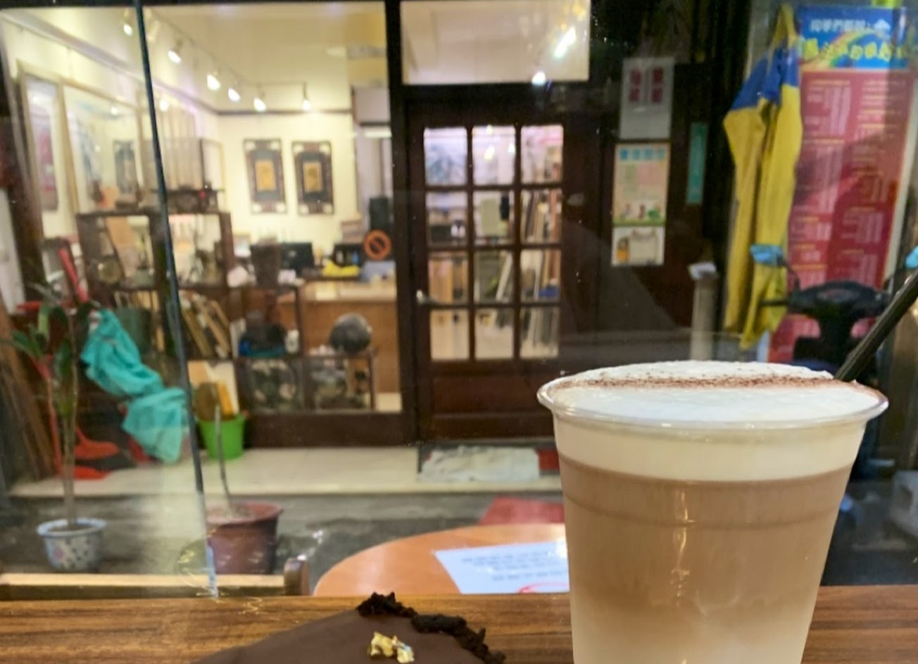 一個人晃著晃著 發現巷子裡的這間 點了73%巧克力香蕉千層 和 黑糖鮮奶茶 好吃?氣氛也很好♡廁所裝潢的很不錯?? …