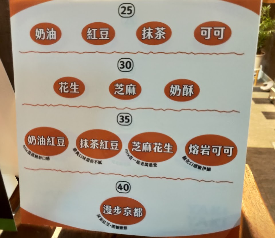 吃了抹茶紅豆、漫步京都、奶油、芝麻花生