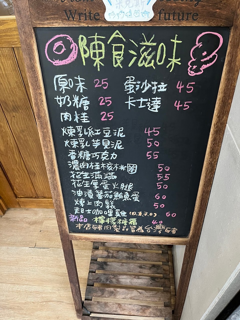 ?煉乳芋見泥 $50|煉乳紅豆泥 $45|花生厚蛋火腿 $50|蛋沙拉 $45|煉上肉鬆 $50|原味 $25|可爾必思氣泡飲 $45