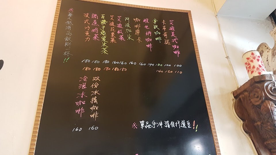手沖咖啡160-250之間,可以先聞豆,口感有水準,古典音樂好聽。