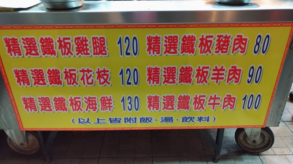 平價小吃第一彈!廟口另類百鈔鐵板燒 從小時候吃到的味道,老闆調製好的醬汁,除了有牛肉、雞肉、豬肉、還有羊肉等!可以選擇喜歡的菜類(一盤只有 豆芽菜、高麗菜擇一)推薦沙朗牛、雞腿肉,很夠勁很香肉質也不錯。 牛豬羊偏普通但加店家的辣椒醬又可以跳起一直獨舞~ 蔥蛋及鐵板豆腐很好吃一定要點,內用還有附白飯一碗 、湯一碗、冰紅茶免費續到爽!只是店家環境小,依照生意這麼好不知道為什麼不擴店小可惜!請耐心排隊或是內用後餐(內用辣椒醬要去其他客人桌上尋找不是每一桌都有) 評比為‘’中等上‘’會回訪。 服務 內用 餐點類型 晚餐 平均每人消費金額 $1-200