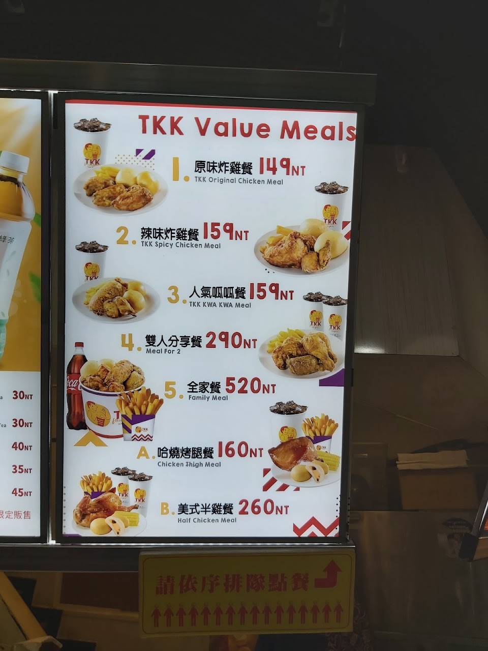 裡面有米飯的雞皮還不錯..需要一些醬汁… 服務 內用 餐點類型 晚餐 平均每人消費金額 $600-800 建議的餐點 TKK Original Chicken Meal TKK Spicy Chicken Spicy Chicken