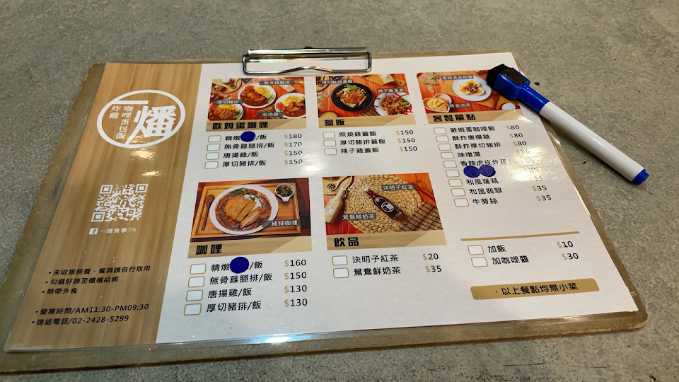 在11月9日中午,我到這間餐廳用餐,點了一個80元的歐姆蛋咖哩飯,歐姆蛋吃起來很滑嫩,咖哩吃起來還不錯,店內還有賣其他炸物和排飯。我還看到桌上有可以追溯雞肉來源的qr code,可見得此店家對食材有不小的用心。吃完飯後,我收拾東西,就靠上椅子離開。