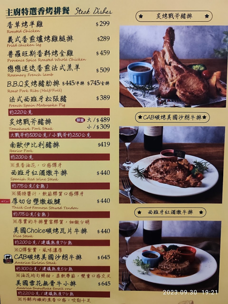 推薦:西班牙紅酒燉牛肉、窯烤pizza系列