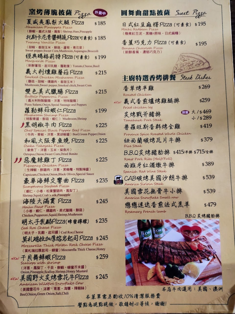 窯烤Pizza皮薄料多,調味也很好吃,究餐點部分,是會讓人想再訪。