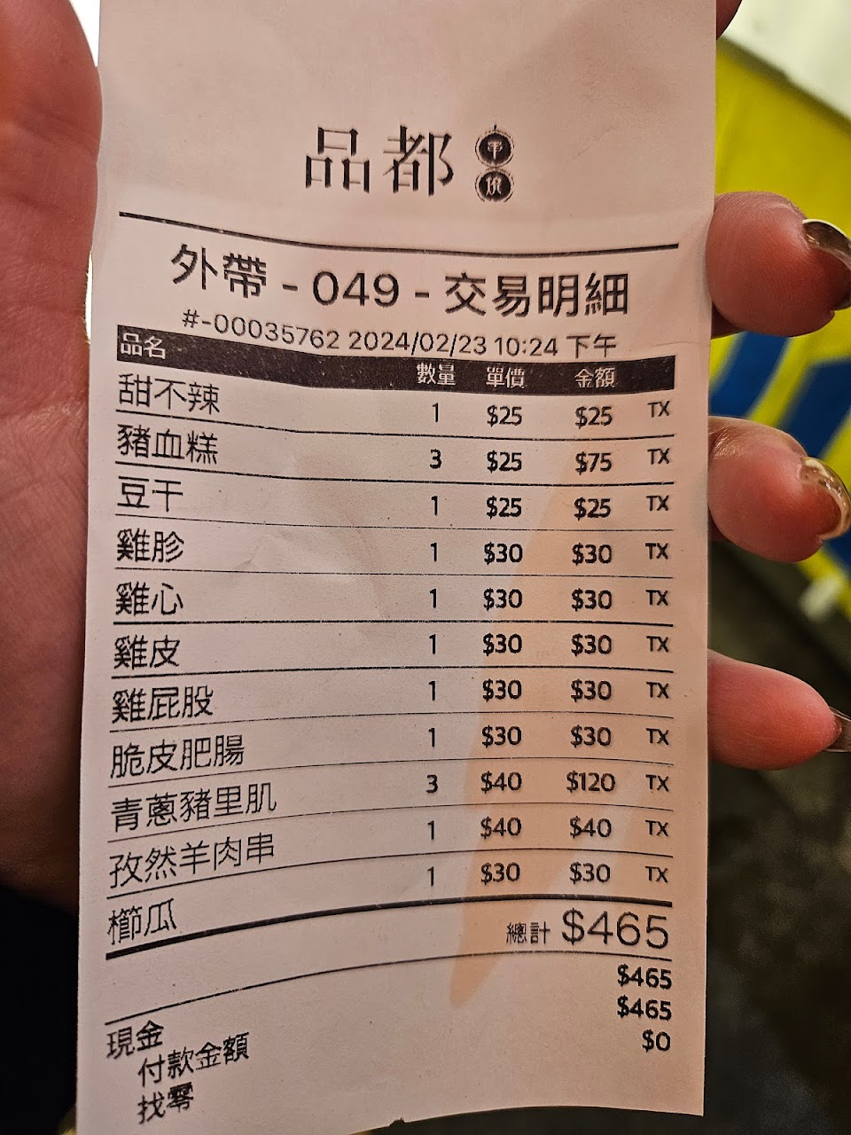 只收現金