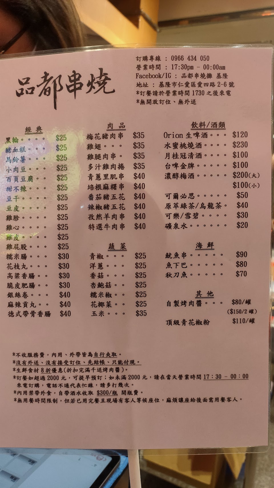 2024最新在地推薦餐廳的菜單_品都串燒攤 基隆的菜單、圖片